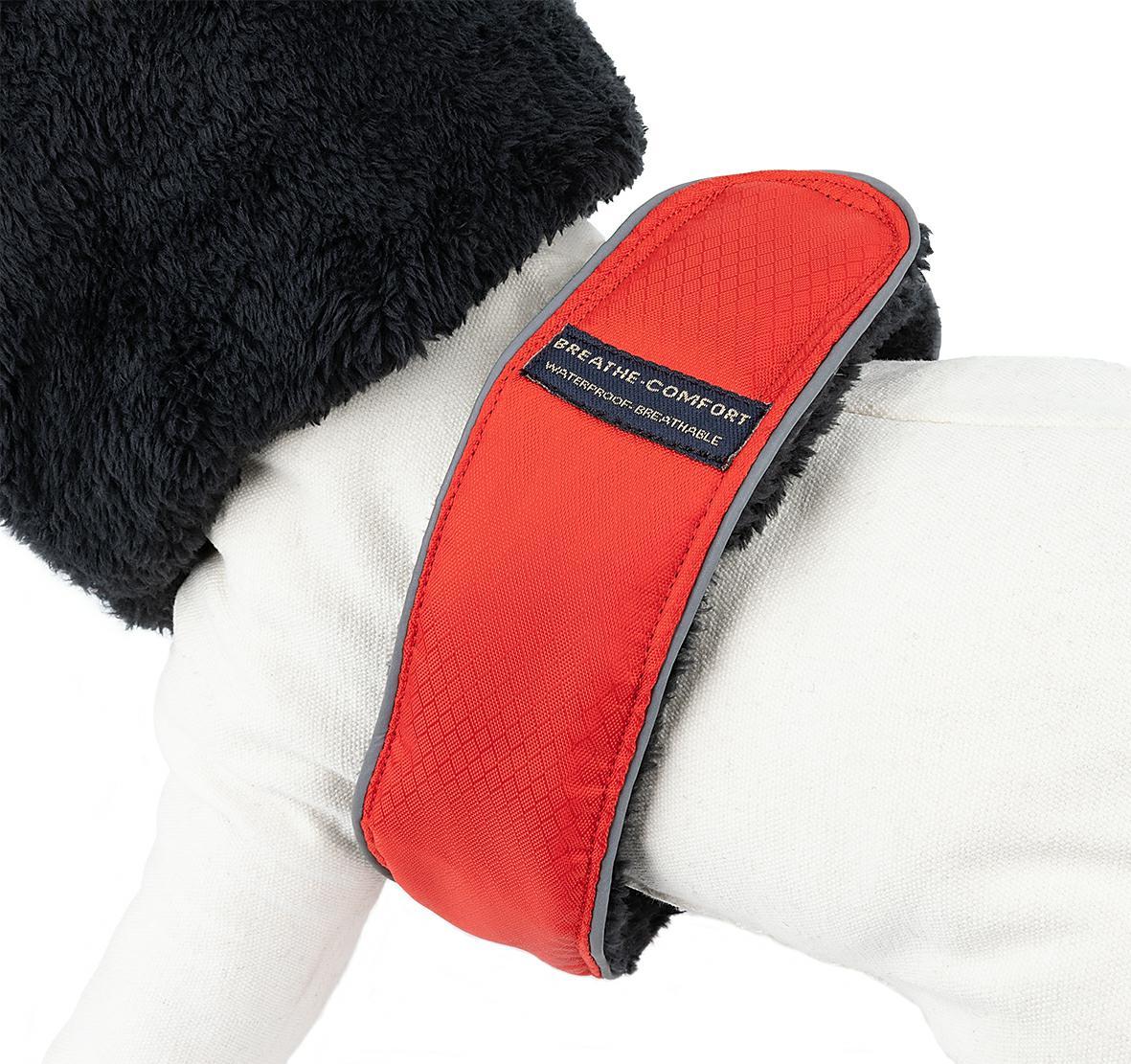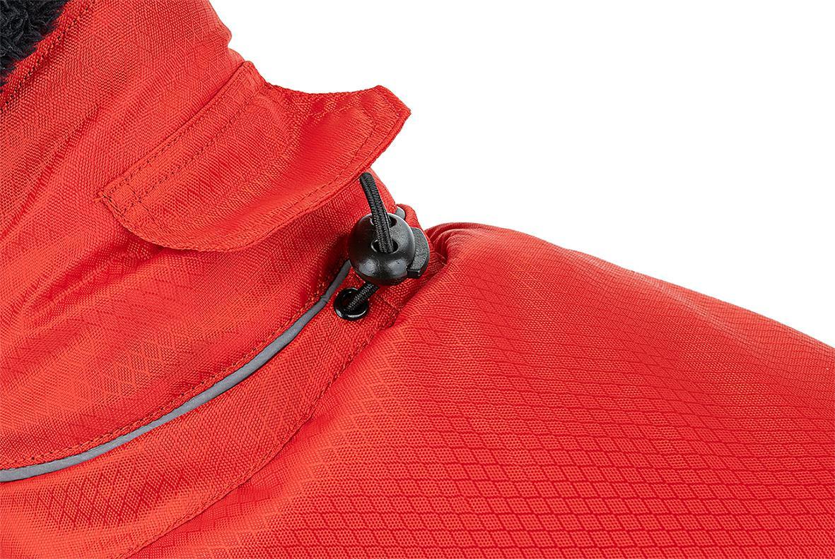 Okrycie dla psa z miękkim kołnierzem wspomoże naszego pupila warstwą oddychającego, trzymającego ciepło materiału. Jego rozłożysty kształt i wysunięty szeroki kołnierz pozwalają na ochronę jak największej powierzchni ciała psa, bez niepotrzebnego krępowania ruchów. Ubranko łatwo zapina się paskami na rzepy, które umieszczone są na klatce piersiowej psa. Dodatkowo, materiał z którego zostało wykonane jest wodoodporne i można prać je w pralce w temperaturze 30 stopni. Dostępne są rozmiary XS (25cm), XS (30cm), S (40cm), M (50cm), L (60cm) oraz kolory granatowy i czerwony.