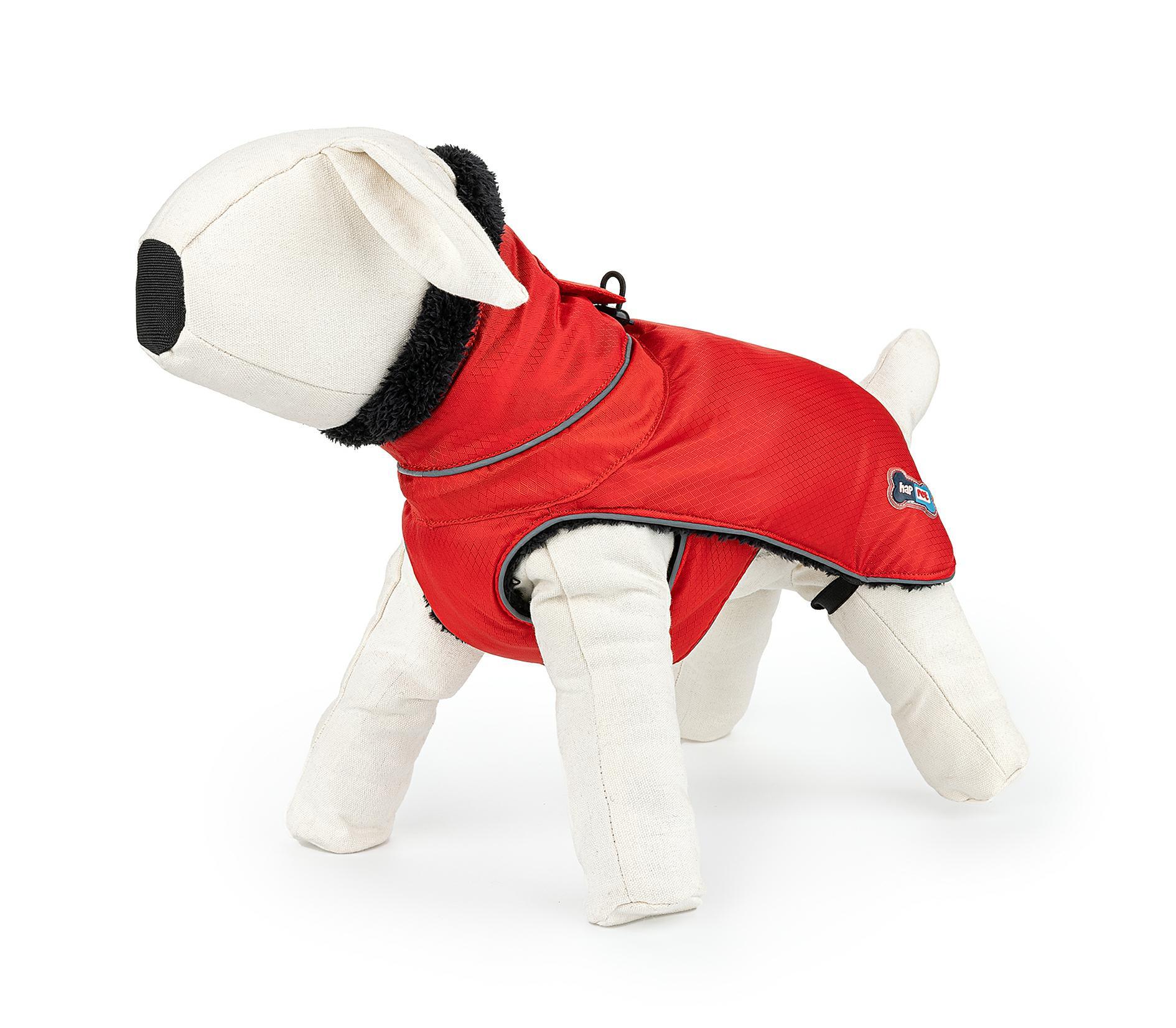 Okrycie dla psa z miękkim kołnierzem wspomoże naszego pupila warstwą oddychającego, trzymającego ciepło materiału. Jego rozłożysty kształt i wysunięty szeroki kołnierz pozwalają na ochronę jak największej powierzchni ciała psa, bez niepotrzebnego krępowania ruchów. Ubranko łatwo zapina się paskami na rzepy, które umieszczone są na klatce piersiowej psa. Dodatkowo, materiał z którego zostało wykonane jest wodoodporne i można prać je w pralce w temperaturze 30 stopni. Dostępne są rozmiary XS (25cm), XS (30cm), S (40cm), M (50cm), L (60cm) oraz kolory granatowy i czerwony.