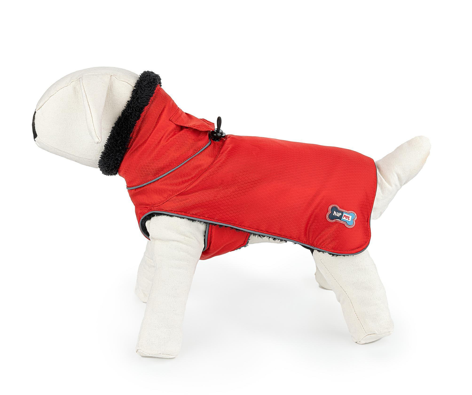 Okrycie dla psa z miękkim kołnierzem wspomoże naszego pupila warstwą oddychającego, trzymającego ciepło materiału. Jego rozłożysty kształt i wysunięty szeroki kołnierz pozwalają na ochronę jak największej powierzchni ciała psa, bez niepotrzebnego krępowania ruchów. Ubranko łatwo zapina się paskami na rzepy, które umieszczone są na klatce piersiowej psa. Dodatkowo, materiał z którego zostało wykonane jest wodoodporne i można prać je w pralce w temperaturze 30 stopni. Dostępne są rozmiary XS (25cm), XS (30cm), S (40cm), M (50cm), L (60cm) oraz kolory granatowy i czerwony.