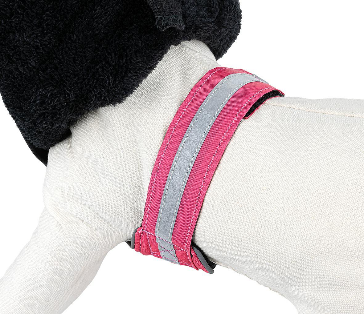 Okrycie dla psa z miękkim kołnierzem wspomoże naszego pupila warstwą oddychającego, trzymającego ciepło materiału. Jego rozłożysty kształt i wysunięty szeroki dwuwarstwowy kołnierz pozwalają na ochronę jak największej powierzchni ciała psa, bez niepotrzebnego krępowania ruchów. Ubranko łatwo zapina się paskami na rzepy, które umieszczone są na klatce piersiowej psa. Dodatkowo, materiał z którego zostało wykonane jest wodoodporne i można prać je w pralce w temperaturze 30 stopni. Dostępne są rozmiary XS (25cm), XS (30cm), S (40cm), M (50cm), L (60cm) oraz kolory ciemnoróżowy i granatowy.