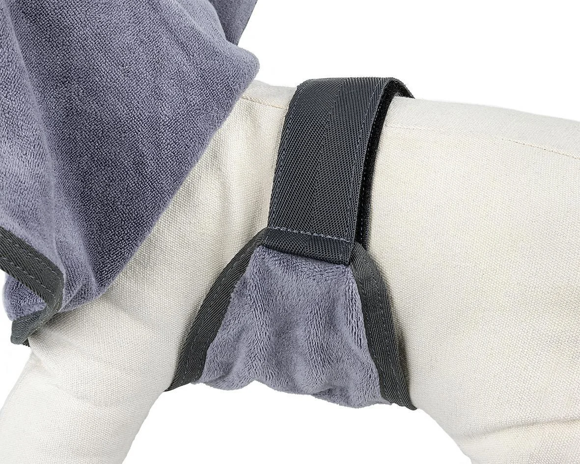 Okrycie micro dry dla psa zostało stworzone specjalnie na potrzeby mokrych psiaków. Wykonane z chłonącego materiału, który dodatkowo utrzymuje ciepło, jest równocześnie oddychające. Ubranko wygodnie zapina się na rzep, pasek znajduje się na klatce piersiowej czworonoga. Nieuniknione błotne plamy można łatwo wyprać w pralce w 30 stopniach.