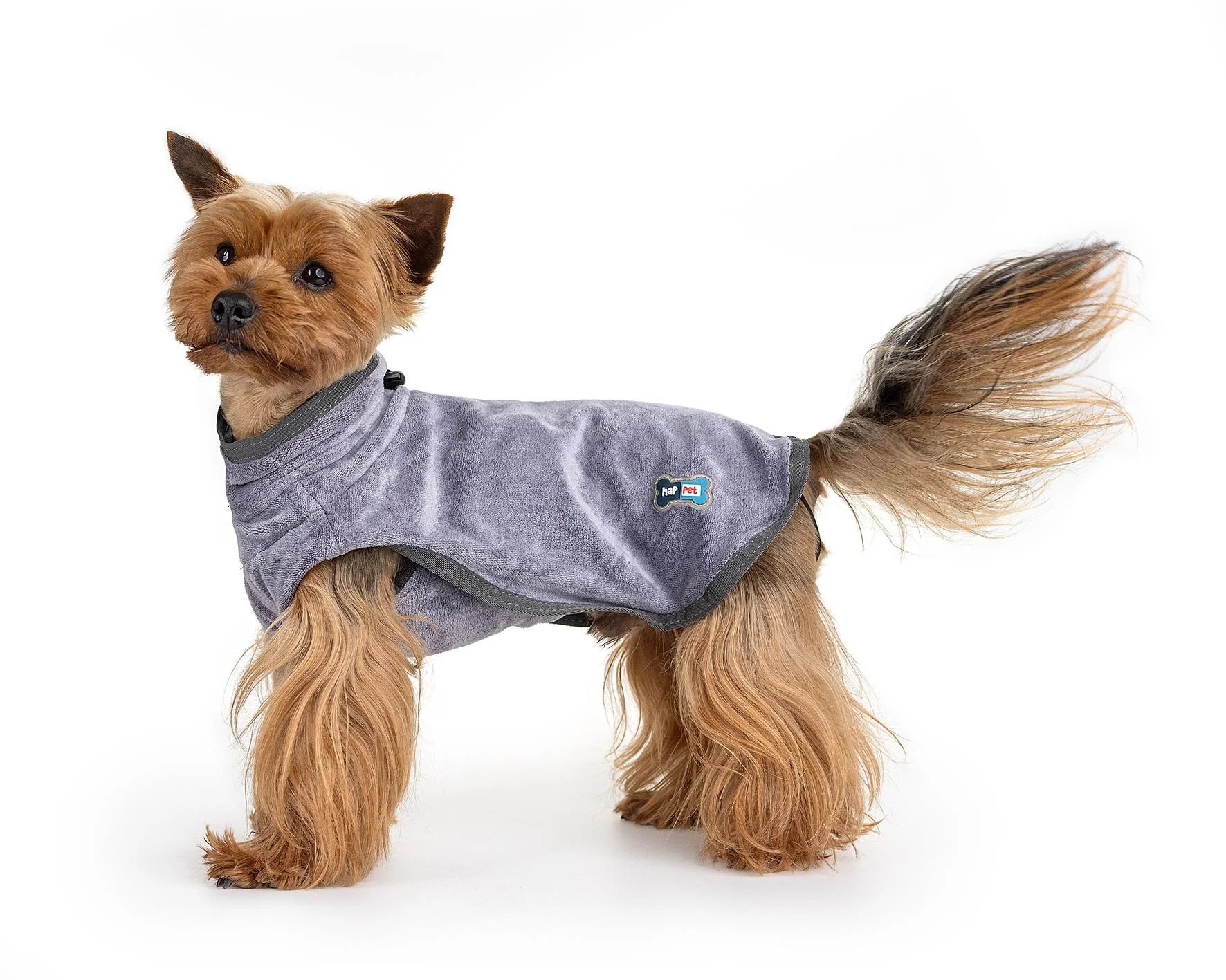 Na świecie istnieją zasady dynamiki i prawa fizyki, ale jest jedna zależność której doświadczają głównie właściciele psów. Pierwsze Prawo Pływającego Psa brzmi: jeśli Twój pies czuje się jak ryba w wodzie, to ilość błota którą przyniesie do Twojego samochodu lub domu będzie wprost proporcjonalna do jego radości podczas pływania. Niestety, nie potrafimy podać wzoru na PPPP, ale udało nam się wprowadzić do naszej oferty ubranko osuszające.
