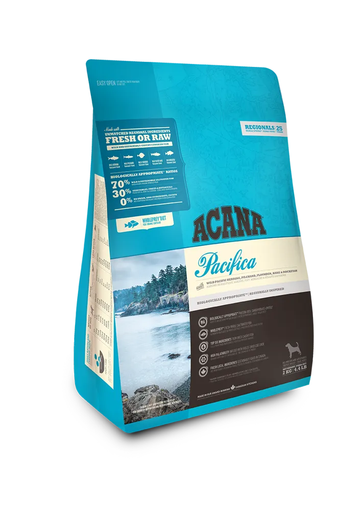 Oferujemy wyjątkową karmę dla psów ACANA Pacifica, która jest pełna świeżych składników. To połączenie różnorodnych mięs, takich jak drób z wolnego wybiegu, ryby poławiane w naturalnym środowisku oraz dziczyzna. Nasza karma jest przygotowywana w kuchni NorthStar, zgodnie z Biologicznie Odpowiednimi standardami.