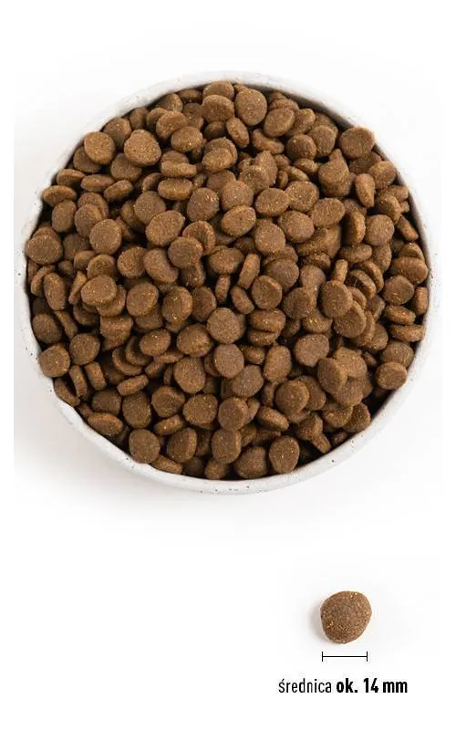 Dawkowanie: Dawkowanie zależy od wagi psa oraz jego aktywności. Przykładowo, dla psa o wadze 10 kg, zaleca się 150 g dziennie przy aktywnym trybie życia.