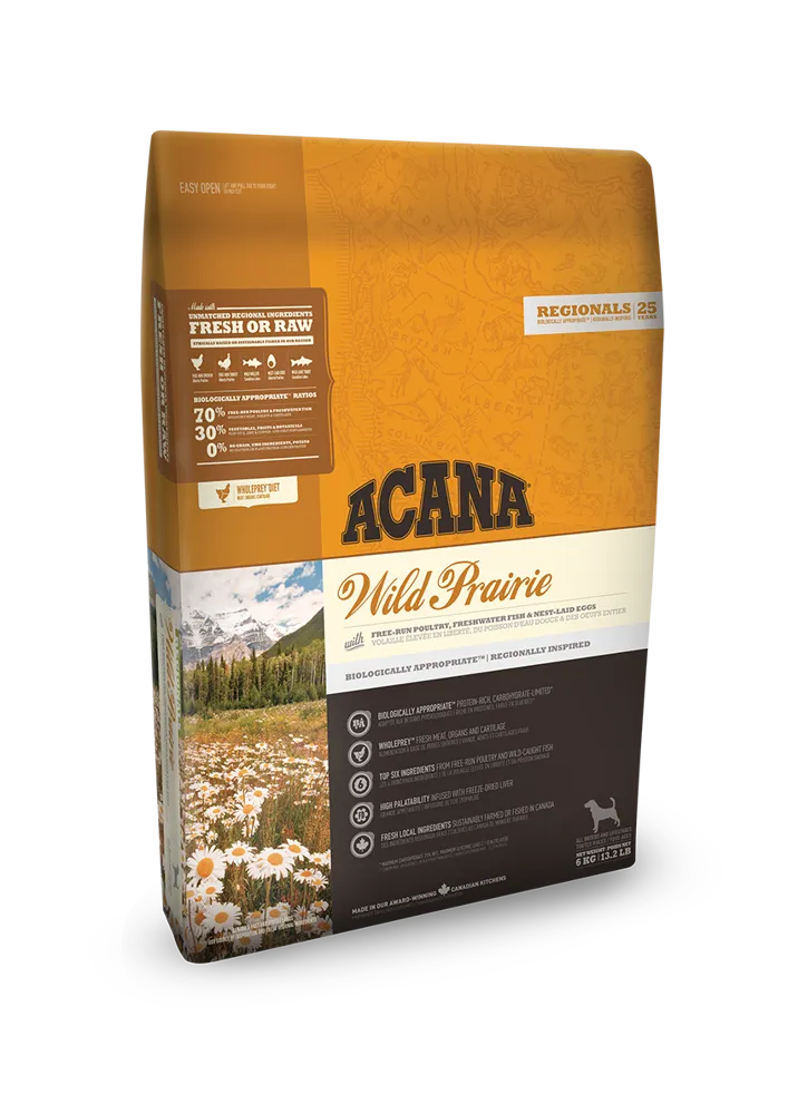 Wybierając Acana Regionals Wild Prairie, zapewniasz swojemu psu naturalne składniki oraz pełnowartościowe odżywianie, które wspiera jego zdrowie i witalność.