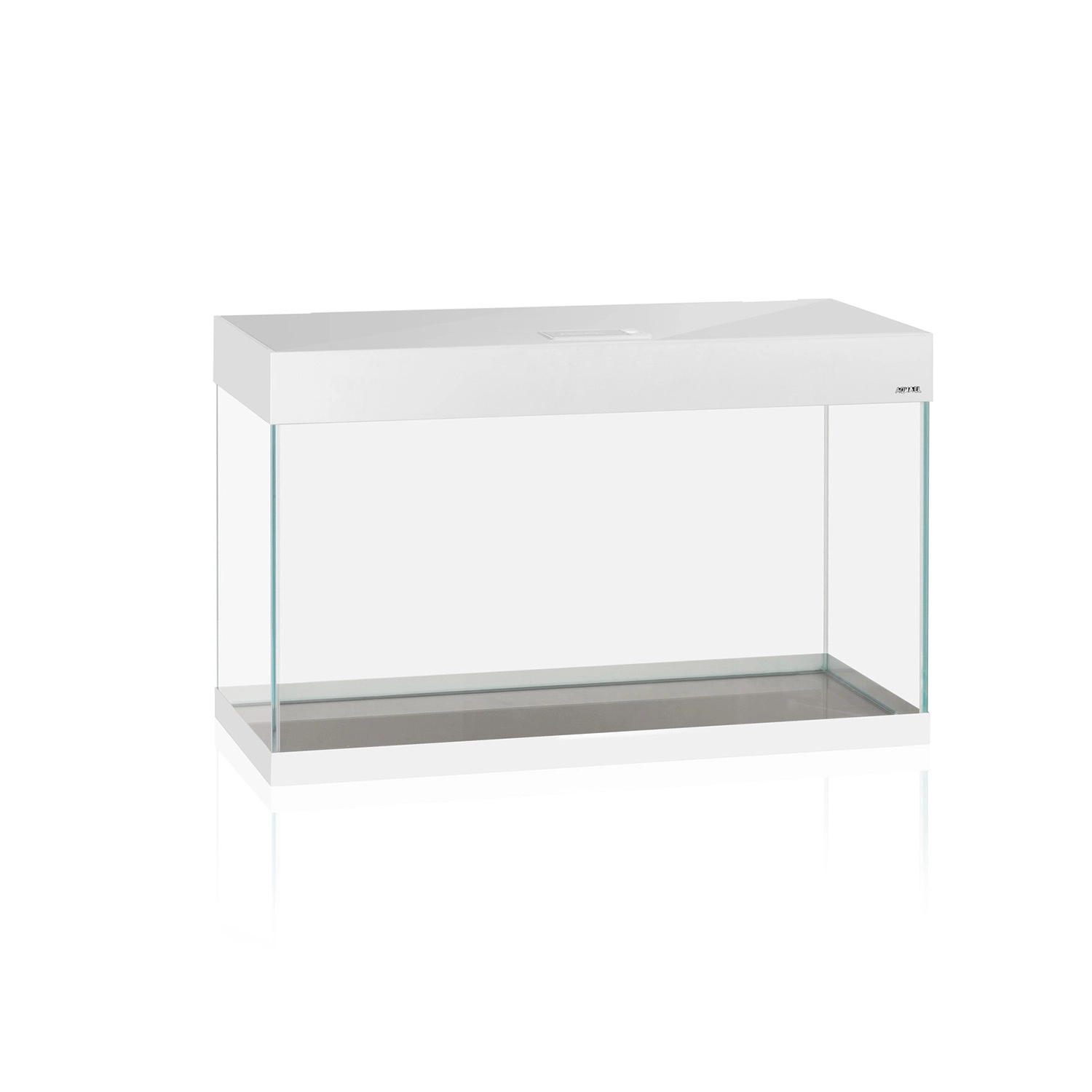 Zestaw akwariowy z akwarium o pojemności 125 litrów o wymiarach 81 x 36 x 51 cm wraz z oświetleniem, w kolorze białym.