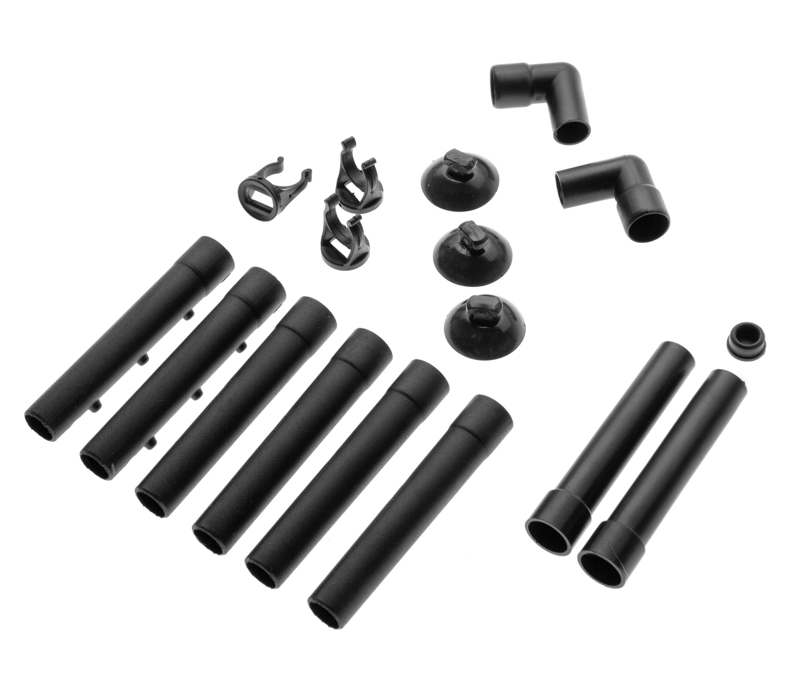 Zestaw składa się z akwarium, pokrywy z oświetleniem o mocy 7W, oraz grzałki o mocy 50W i filtra. Kolor czarny.