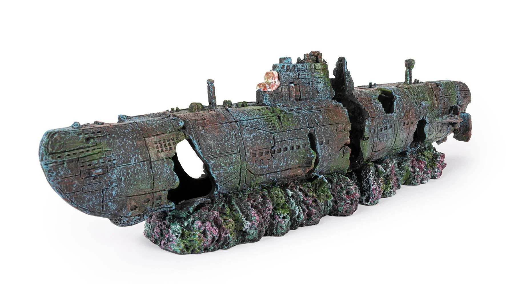 Ozdoba akwariowa - Łódź podwodna R184 Łódź podwodna o długości 40 cm to idealny element dekoracyjny dla każdego akwarium. Dzięki niej stworzysz naturalny klimat w swoim zbiorniku, co z pewnością urozmaici jego aranżację. Produkt składa się z dwóch części,…