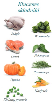 W składzie znajdziesz również dynię (2,5%), zielony groszek (2,5%), siemię lniane oraz glukozaminę i chondroitynę, które wspierają zdrowie stawów. Naturalne składniki, takie jak pokrzywa, rozmaryn i nagietek, działają jako antyoksydanty, wspierając odporność Twojego pupila.
