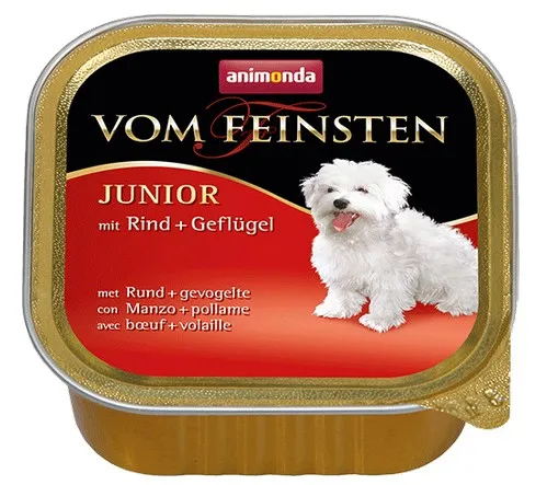 Animonda vom Feinsten Dog Junior to idealny wybór dla młodych psów, które zasługują na zdrową i zróżnicowaną dietę. Ten pokarm z wołowiną i drobiem z pewnością przypadnie do gustu nawet najbardziej wybrednym smakoszom. Dzięki starannie dobranym składnikom, Twój pies otrzyma wszystko, czego potrzebuje do prawidłowego rozwoju.