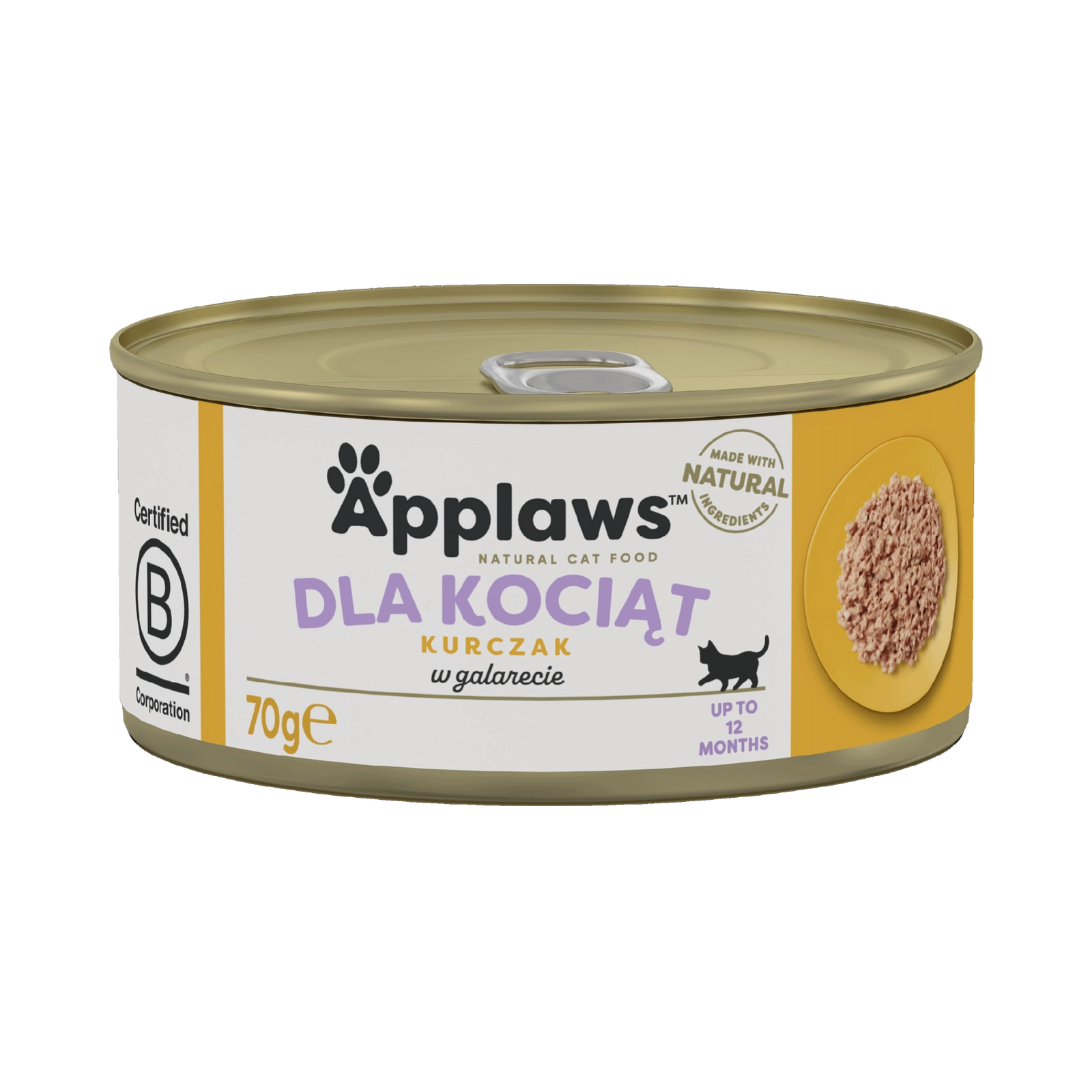 Applaws puszka dla kociąt Kitten Kurczak 70g to doskonały wybór dla młodych kotów. Ten naturalny pokarm uzupełniający zawiera wysokiej jakości mięso z piersi kurczaka, co zapewnia zdrową dietę dla kociąt w wieku od 4 do 12 miesięcy. Puszki są wolne od konserwantów i sztucznych dodatków, co sprawia, że są idealnym uzupełnieniem dla suchej karmy Applaws.