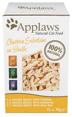Saszetki Applaws to doskonałe rozwiązanie dla kotów, które oferuje naturalne składniki oraz zdrowe odżywienie. W skład zestawu wchodzą czyste kawałki mięsa z piersi kurczaka, a także dodatki takie jak dynia, dziki ryż, szparagi oraz krewetki pacyficzne. Dzięki przezroczystemu opakowaniu, można łatwo zobaczyć zawartość, co jest dodatkowym atutem tego produktu.