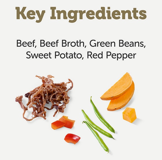 W składzie znajdują się delikatne kawałki wołowiny, zielony groszek, bataty oraz czerwona papryka, co sprawia, że karma jest nie tylko smaczna, ale także bogata w witaminy i minerały. Bezzbożowa formuła sprawia, że jest odpowiednia dla psów z wrażliwym układem pokarmowym.
