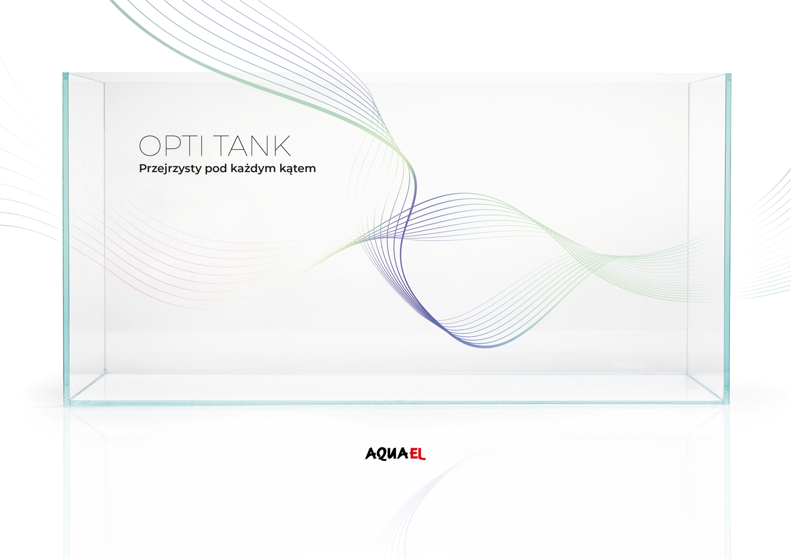 Przejrzysty pod każdym kątem. Opti Tank to akwarium wykonane ze szkła typu opti, które zapewnia wyjątkową przejrzystość. Dopracowane detale zbiornika sprawiają, że prezentuje się on niezwykle lekko i estetycznie. Krawędzie zbiornika są polerowane i zakończone szlifem trapezowym. Szkło jest pozbawione zielonkawego zabarwienia i posiada wysoki współczynnik przepuszczania światła. Dzięki temu doskonale oddaje ono naturalne barwy roślin i zwierząt oraz tworzy efekt krystalicznie czystej wody. Opti Tank jest idealny do tworzenia przestrzennych i otwartych aranżacji.