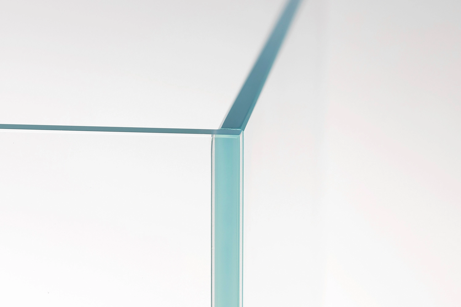 Precyzyjne łączenie szkła metodą bezwałkową sprawia, że ścianki akwarium idealnie do siebie pasują. Transparentny silikon dodatkowo pogłębia wrażenie czystości i lekkości. Szkło typu opti oznacza, że zostało ono poddane specjalnemu procesowi odżelaziania, w którym uzyskuje się efekt bezbarwności.