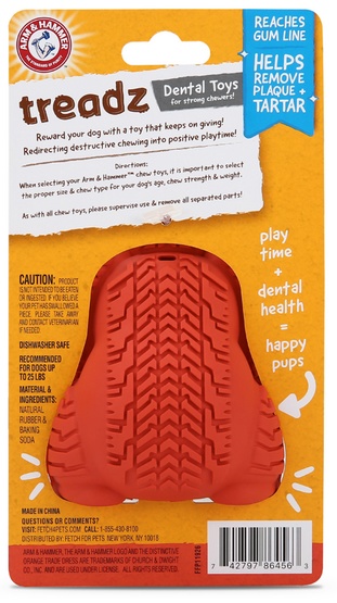 Super Treadz to linia uznanych zabawek dentystycznych dla psów. Zabawki zostały wykonane z wytrzymałej gumy naturalnej, co zapewnia ich długotrwałe użytkowanie. Dzięki zawartości sody oczyszczonej, pomagają w zwalczaniu nieświeżego oddechu oraz redukcji płytki nazębnej i kamienia, bez konieczności szczotkowania!