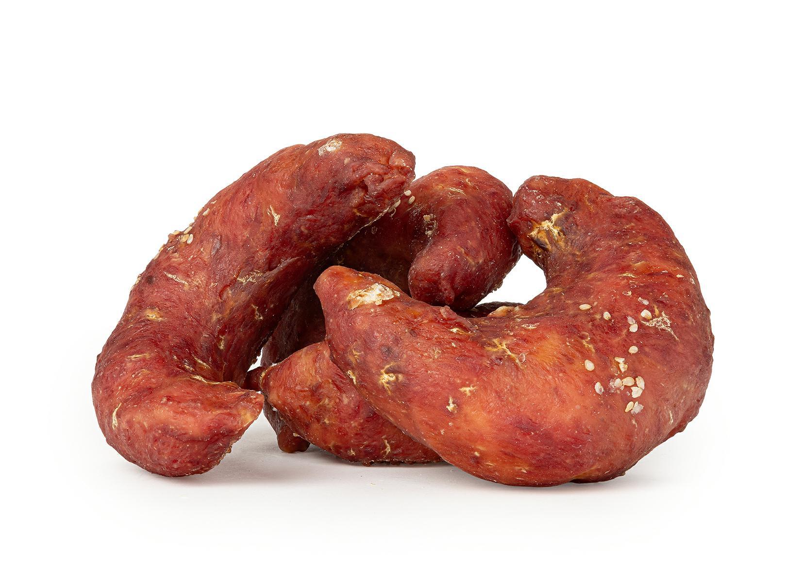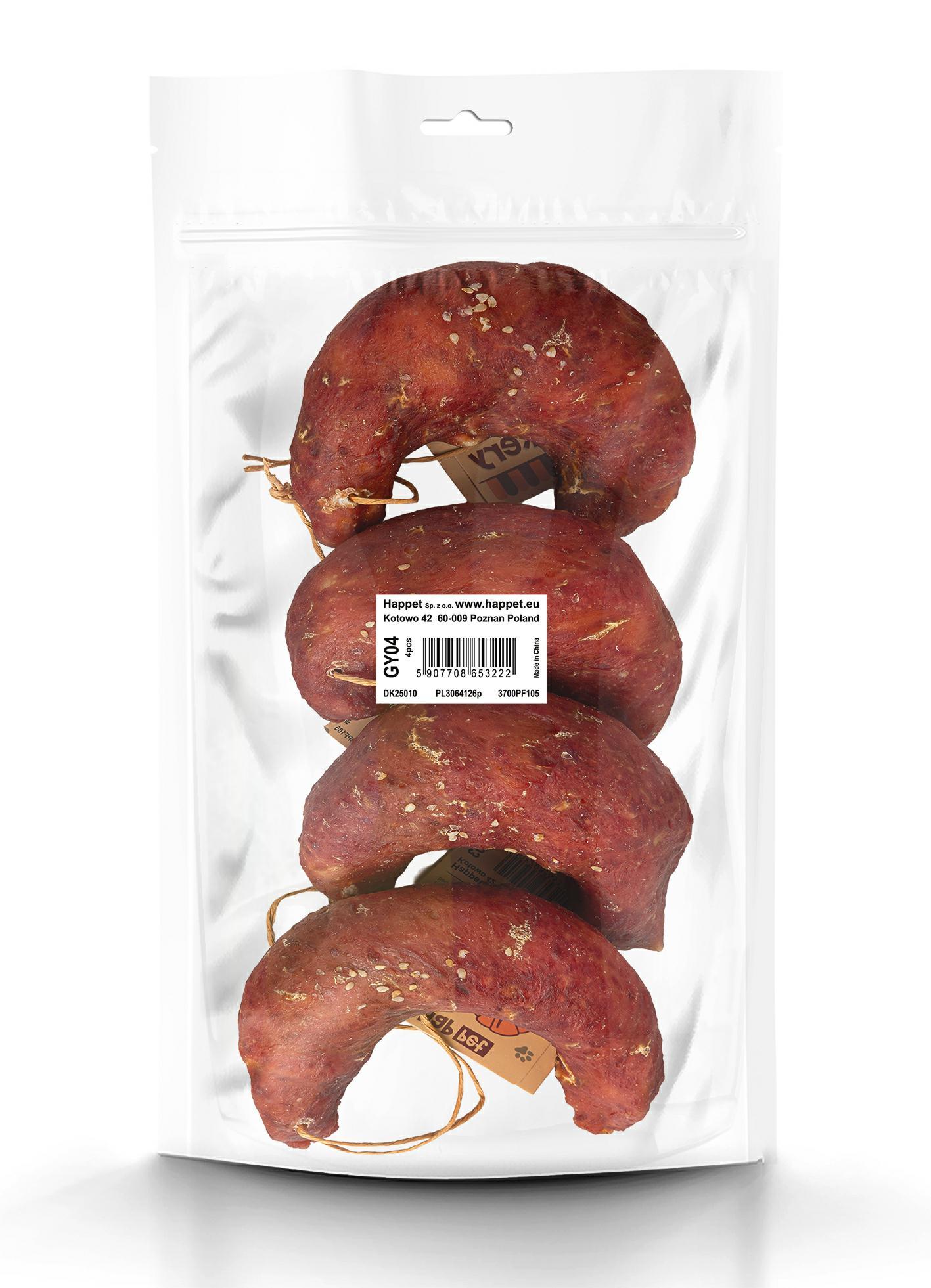 Oferujemy wyjątkowy przysmak z serii Happ Bakery. Croissant z królika to nie tylko smakowita przekąska, ale także estetyczny rogalik, który wygląda jak prawdziwy wypiek. W opakowaniu znajdują się cztery sztuki, co pozwala na dłuższe delektowanie się tym smakołykiem.