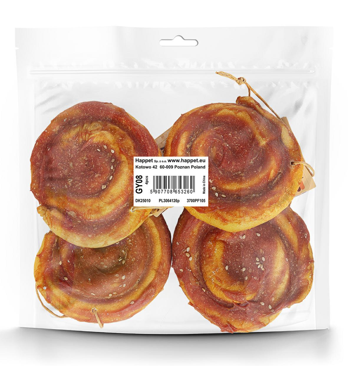 Oferujemy cynamonkę z kaczki z serii Happ Bakery, która jest pyszną i zdrową przekąską dla Twojego pupila. W opakowaniu znajdują się cztery sztuki tej aromatycznej drożdżówki, która zachwyca nie tylko wyglądem, ale i smakiem.