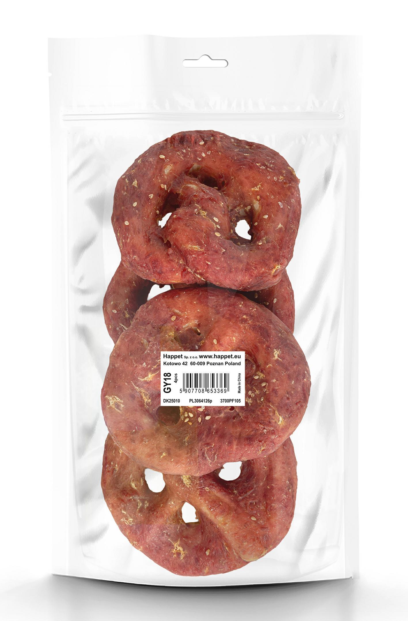 Oferujemy wyjątkowy przysmak dla psów – Precel z jagnięciną. W pakiecie znajdują się cztery sztuki, które łączą smak i estetykę. Ten produkt z serii Happ Bakery jest idealny dla psów, które cenią sobie jakość i oryginalność.