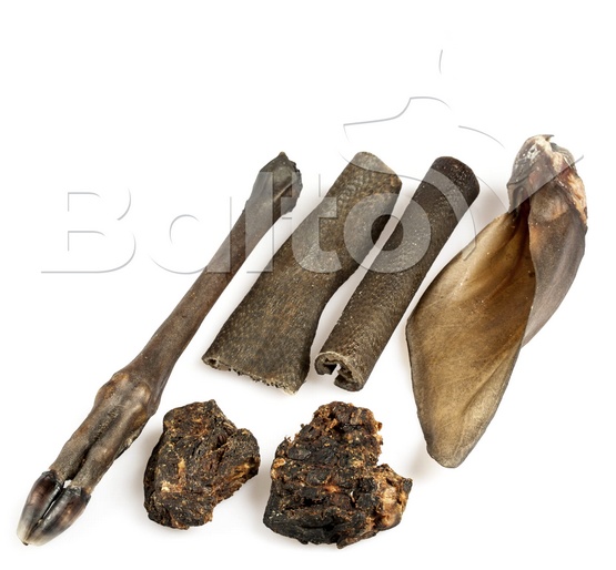 Oferujemy zestaw gryzaków z dziczyzny, który składa się z różnorodnych elementów, takich jak mięso, skóry, uszy i racice. Idealny jako nagroda lub przekąska, ten mix dzika i jelenia jest średnio tłusty, co sprawia, że jest smaczną i zdrową alternatywą dla psów z nietolerancją na wołowinę czy wieprzowinę.