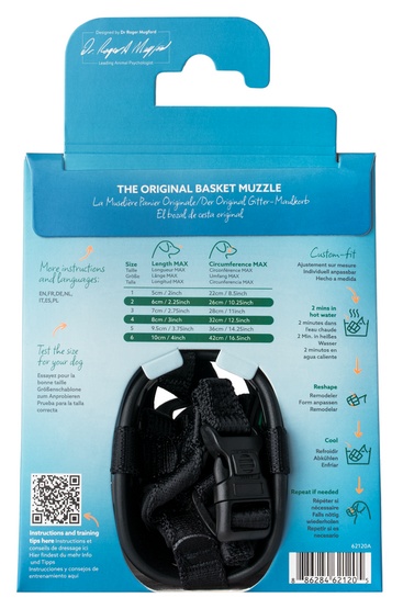 Kaganiec dostępny jest w 6 rozmiarach, co pozwala na idealne dopasowanie do rasy i wielkości psa. Warto pamiętać, że dla młodych psów należy wybrać kaganiec o rozmiar mniejszy. Przy zakładaniu kagańca, nos psa powinien mieć około 1 cm luzu, aby zapewnić swobodę dyszenia.