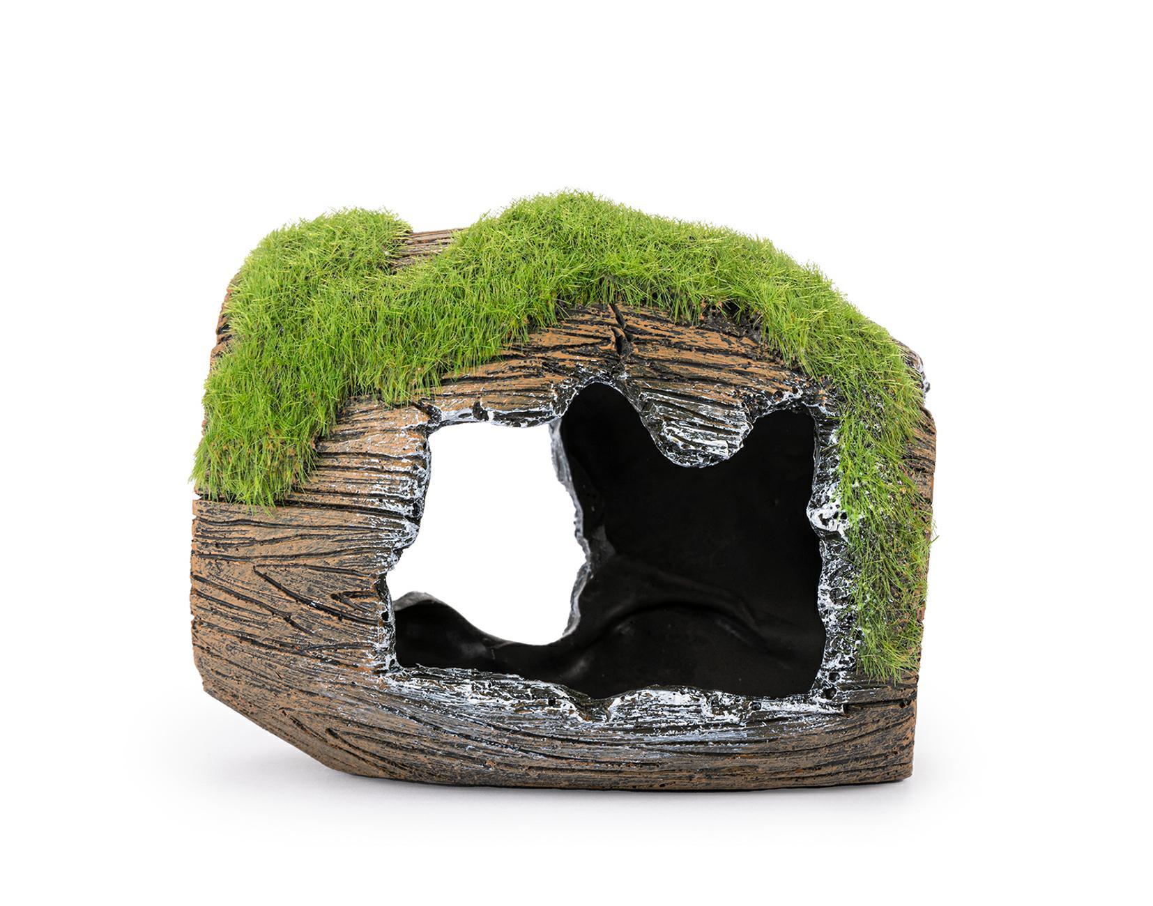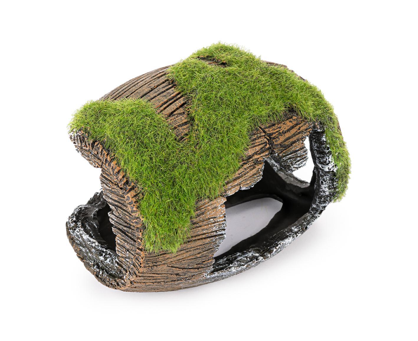 Ozdoba ta wykonana jest z wysokiej jakości żywicy poliestrowej, co sprawia, że jest bezpieczna dla ryb i innych mieszkańców wodnych. Pokryta sztucznym mchem, wygląda naturalnie i estetycznie.