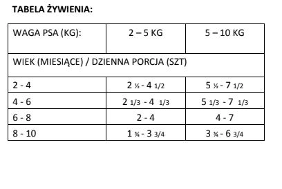 | Waga dorosłego psa | 2 - 5 kg | 5 - 10 kg |