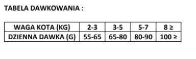 Karma zawiera starannie dobrane składniki, które pomagają utrzymać właściwą masę ciała. Wysoka zawartość kwasów tłuszczowych wspiera zdrową skórę oraz piękny wygląd sierści, co sprawia, że Twój kot będzie wyglądał świetnie.