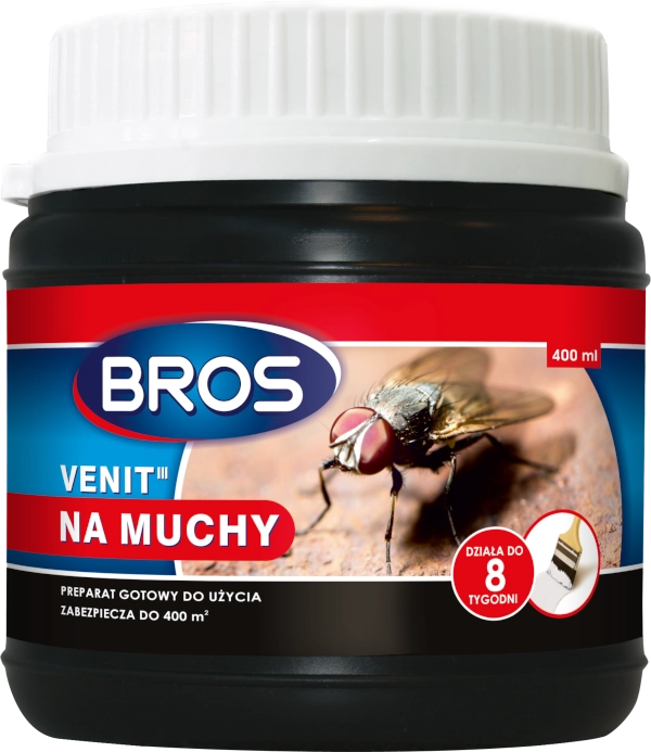 Venit skutecznie zwalcza muchy w pomieszczeniach. Ma postać gotowego do użycia płynu do malowania ram okiennych i parapetów oraz innych nasłonecznionych powierzchni. Zestaw substancji wabiących zapewnia wysoką atrakcyjność preparatu, a bogata w cukry pożywka gwarantuje duże spożycie trutki. Pierwsze efekty działania widoczne są już po 15 minutach od aplikacji, a pełna skuteczność występuje po 1h. Stosowany zgodnie z zaleceniami pozostaje skuteczny aż do 6 - 8 tygodni. Preparat działa najlepiej gdy jest wilgotny. Dlatego po kilku dniach od zastosowania zaleca się delikatne zwilżenie zabezpieczonej powierzchni rozpyloną wodą, nie dopuszczając do jej ściekania i zmycia preparatu.