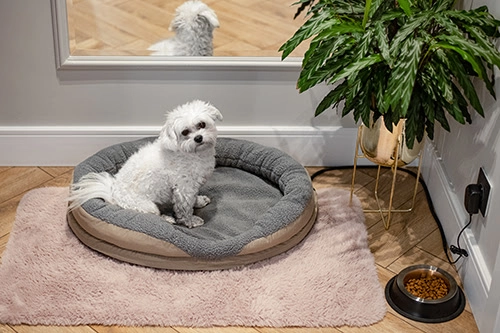 Polecane przez nas legowisko ma kształt elipsy oraz ma podwyższenie, na którym pies czy kot może oprzeć głowę. Zdejmowany pokrowiec zapinany na suwak nadaje się do prania w 40 stopniach Celsjusza i ułatwia utrzymanie czystości. Tkanina zewnętrzna jest wytrzymała na uszkodzenia mechaniczne, a ta wewnątrz jest bardzo przyjemna w dotyku. Urządzenie wyposażone jest w zasilacz przetwarzający napięcie prądu, wszystkie elementy grzewcze są dodatkowo osłonięte pokrowcem, aby łatwo było je wyjmować w razie potrzeby. Przewód zasilający 100 cm i przewód sprężynowy 92 cm pozwalają schować podzespoły przed wścibskim nosem, a co ważniejsze zębami Twojego zwierzaka. Legowisko występuje w ciepłych neutralnych odcieniach kolorów ziemi, więc nie zaburzy wystroju pomieszczeń, a sprawi, że pies lub kot będą lepiej spać.