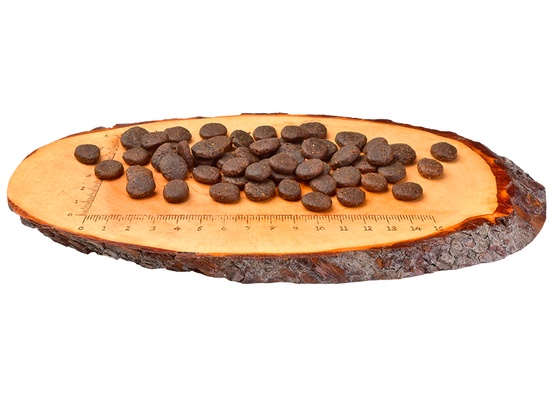 Analiza: białko 35%, tłuszcz 18%, popiół 8,5%, włókno 3,5%, wilgotność 10%, wapń 1,4%, fosfor 1%, EPA 0,08%, DHA 0,1%.