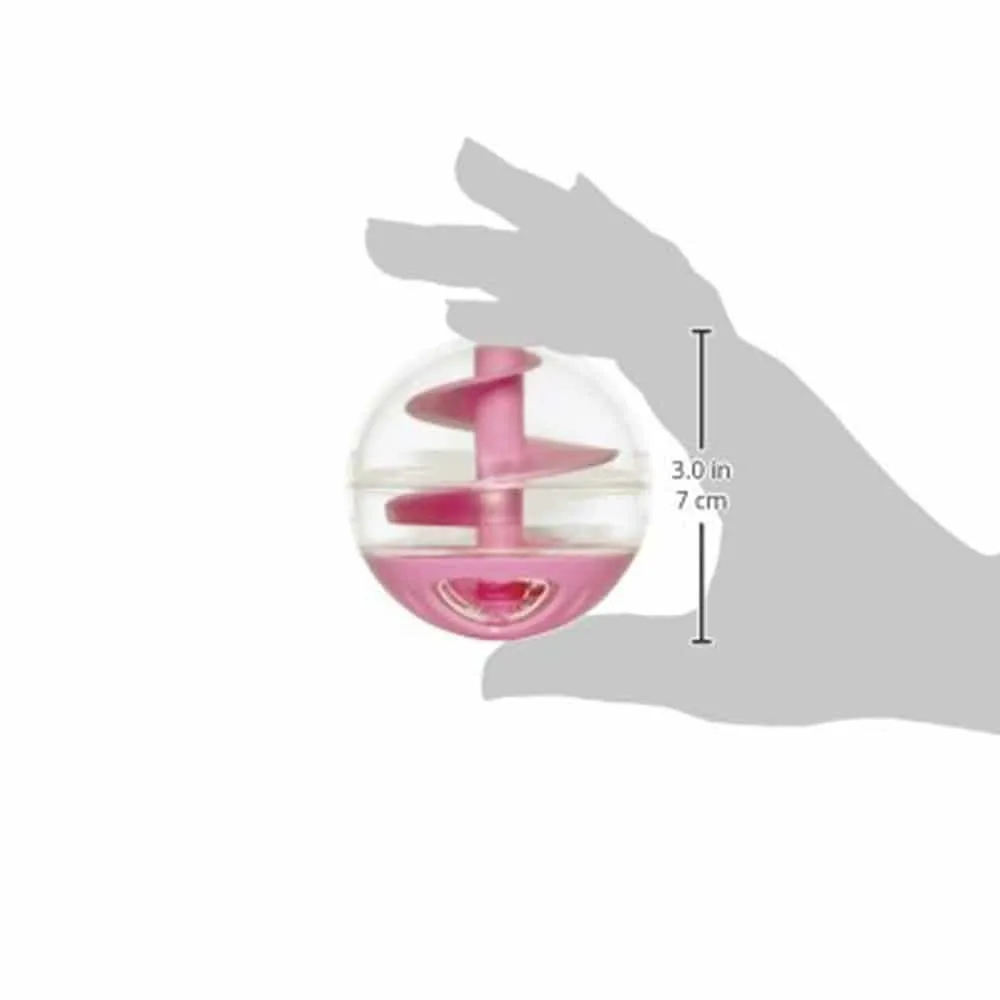 Wymiary kulki wynoszą 7 cm x 5 cm, co czyni ją odpowiednią dla małych i średnich kotów. Wykonana z trwałego plastiku, dostępna jest w atrakcyjnym różowym kolorze. Kula posiada otwór, przez który możesz napełnić ją przysmakami. Podczas toczenia kulki, smakołyki wypadają, co motywuje kota do zabawy.