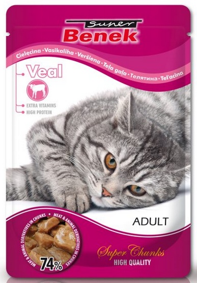 Super Benek saszetka cielęcina w sosie 100g • Kod: mls-7871 • EAN: 5905397014300 • Kategoria: Mokra karma dla kotów Super Benek. Sprawdź szczegóły i kup