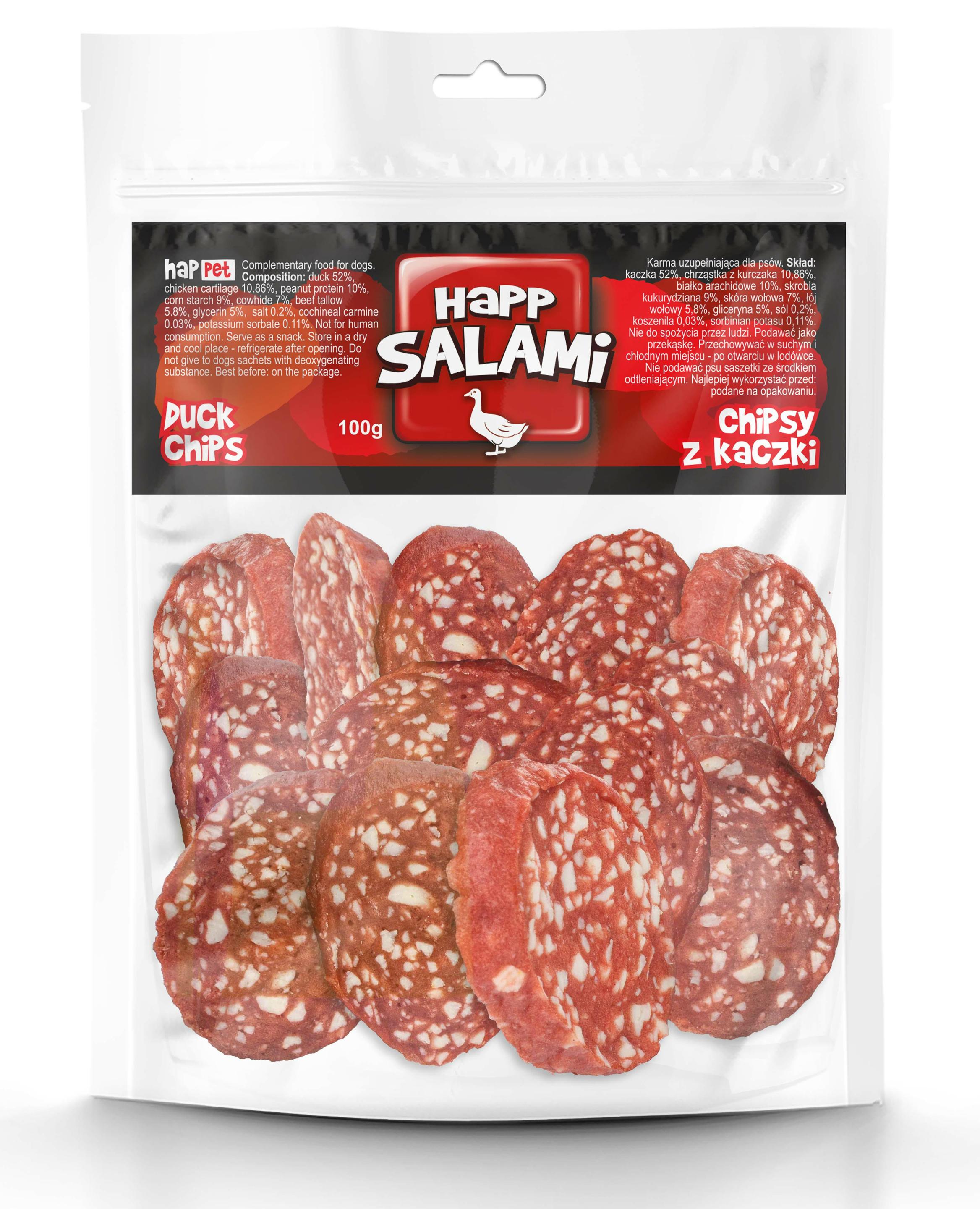 Chipsy z salami z kaczki to smakowity wybór, który z pewnością zadowoli Twojego psa!