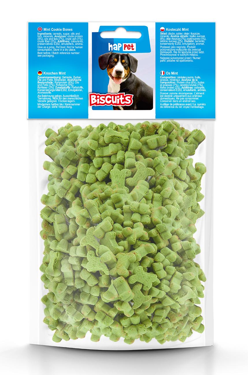 Pyszne, chrupiące ciasteczka dla psa! Idealne do tresury psów w każdym rozmiarze. Dzięki kształtowi kostek, który dobrze znany jest każdemu zwierzakowi, z pewnością przyciągną uwagę twojego pupila. Dodanie do ciastek aromatu mięty pomoże ci w walce o świeży oddech twojego psiaka.