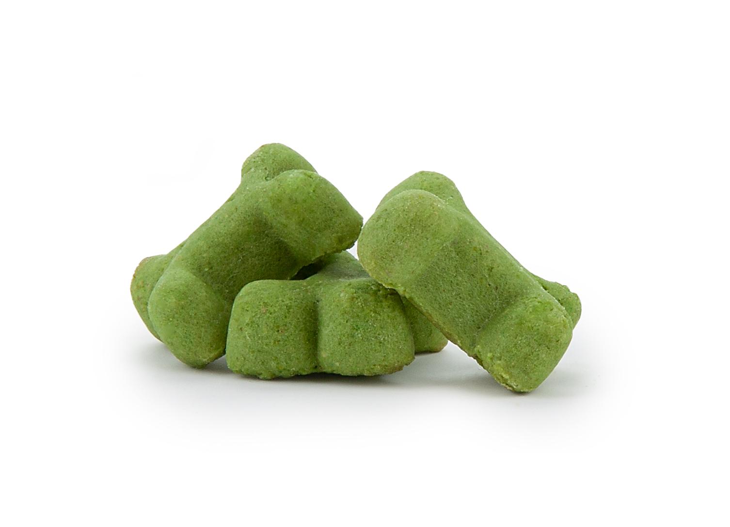 Te małe, chrupiące kosteczki o długości około 2 cm idealnie mieszczą się w kieszeni lub saszetce na przysmaki. Dzięki temu są praktyczne podczas spacerów i treningów. Możesz nagradzać swojego pupila zdrowym smakołykiem za każde poprawnie wykonane polecenie.