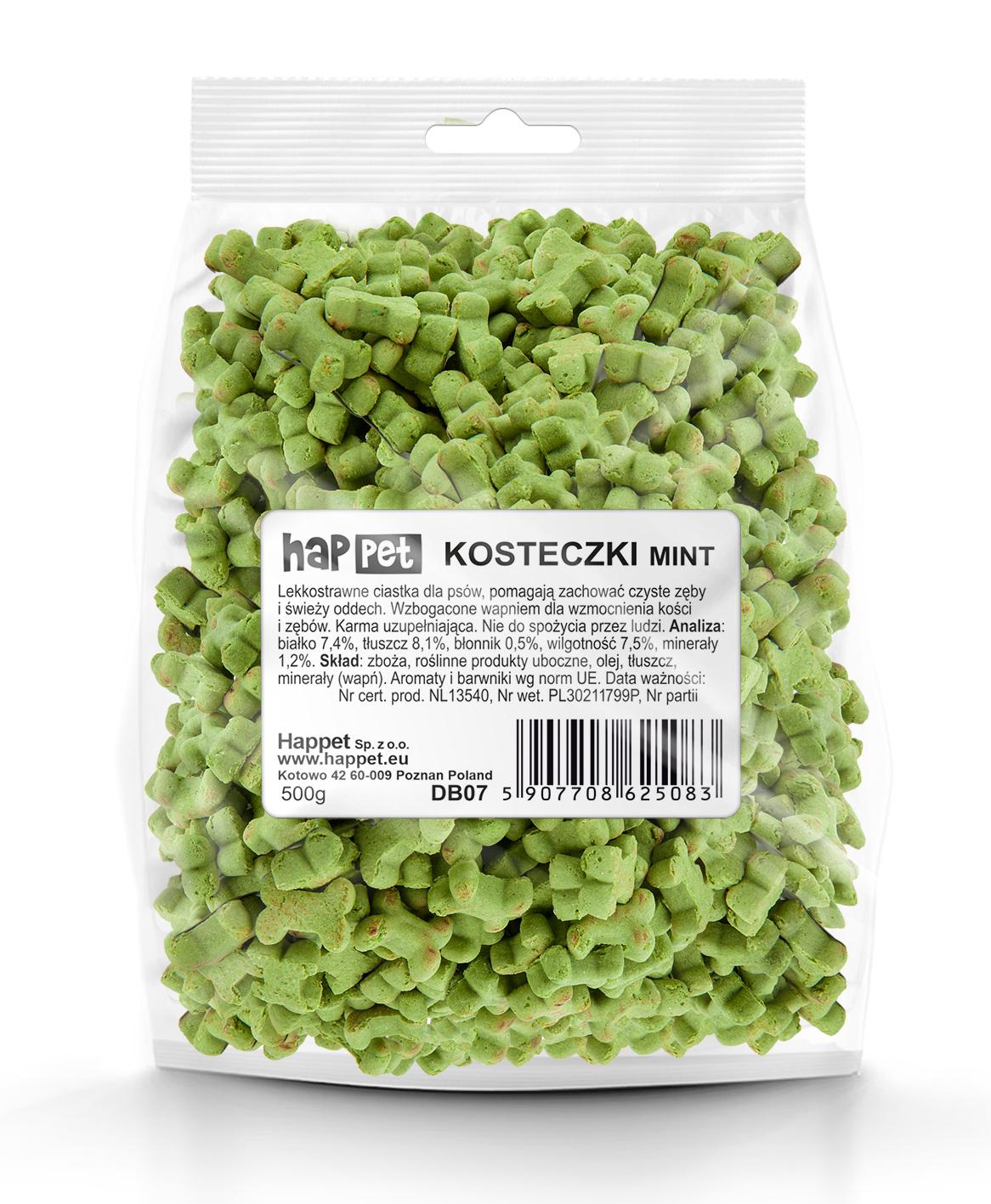 Ciastka dla psów - kosteczki mint Happet 500g