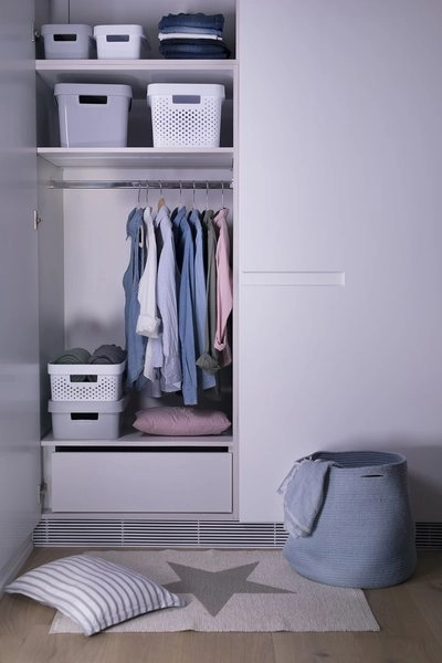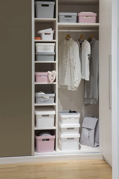 Co ważne, uchwyty nie wystają na boki, co ułatwia przechowywanie i składowanie pojemników jeden na drugim - przydatne rozwiązanie do garderoby.