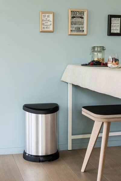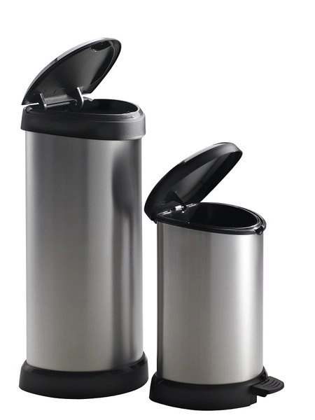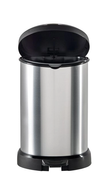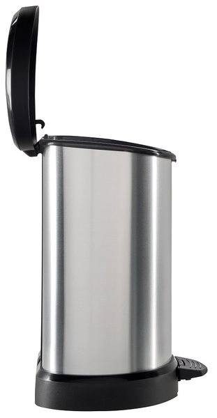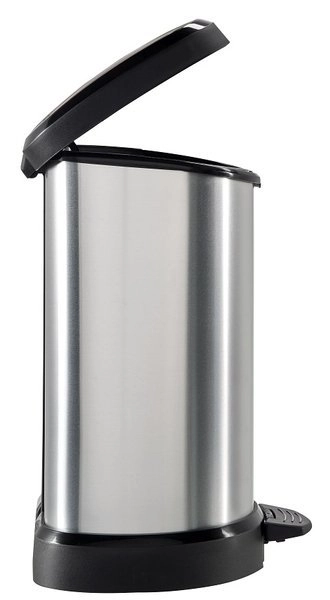 Funkcjonalny kosz na śmieci, ułatwiający utrzymanie czystości w łazience czy innym pomieszczeniu. Wykonany z plastiku i pokryty metalizowaną powierzchnią. Zbiornik na śmieci otwiera się nogą za pomocą specjalnego pedału, dzięki czemu ręce pozostają czyste. Konstrukcja pokrywy pozostawia zawartość kosza stale zamkniętą i niewidoczną.