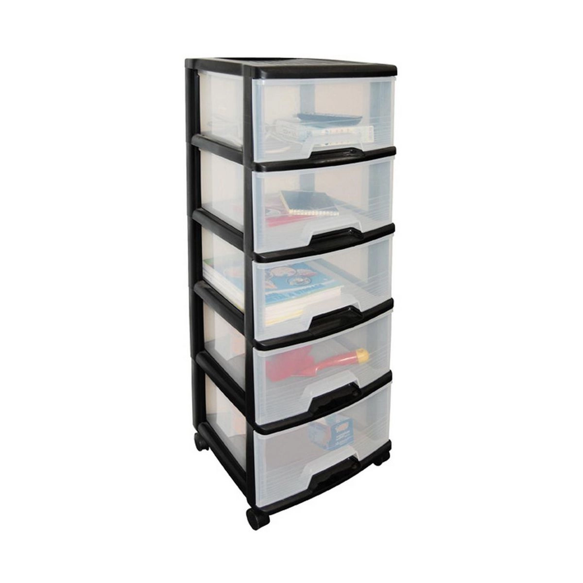 Regał do przechowywania marki Curver odnajdzie się w każdym pomieszczeniu. Neutralny wzór produktu oraz przezroczysty kolor pojemników wpasują się w każdą aranżację wnętrza. Znakomity do przechowywania obuwia w przedpokoju, zabawek w pokoju dziecięcym, ubrań lub innych przedmiotów w potrzebnym miejscu. Dodatkowo czarny regał posiada kółka, dzięki czemu bez problemu przetransportujesz go w inne miejsce. Jedna szuflada ma pojemność 20l.