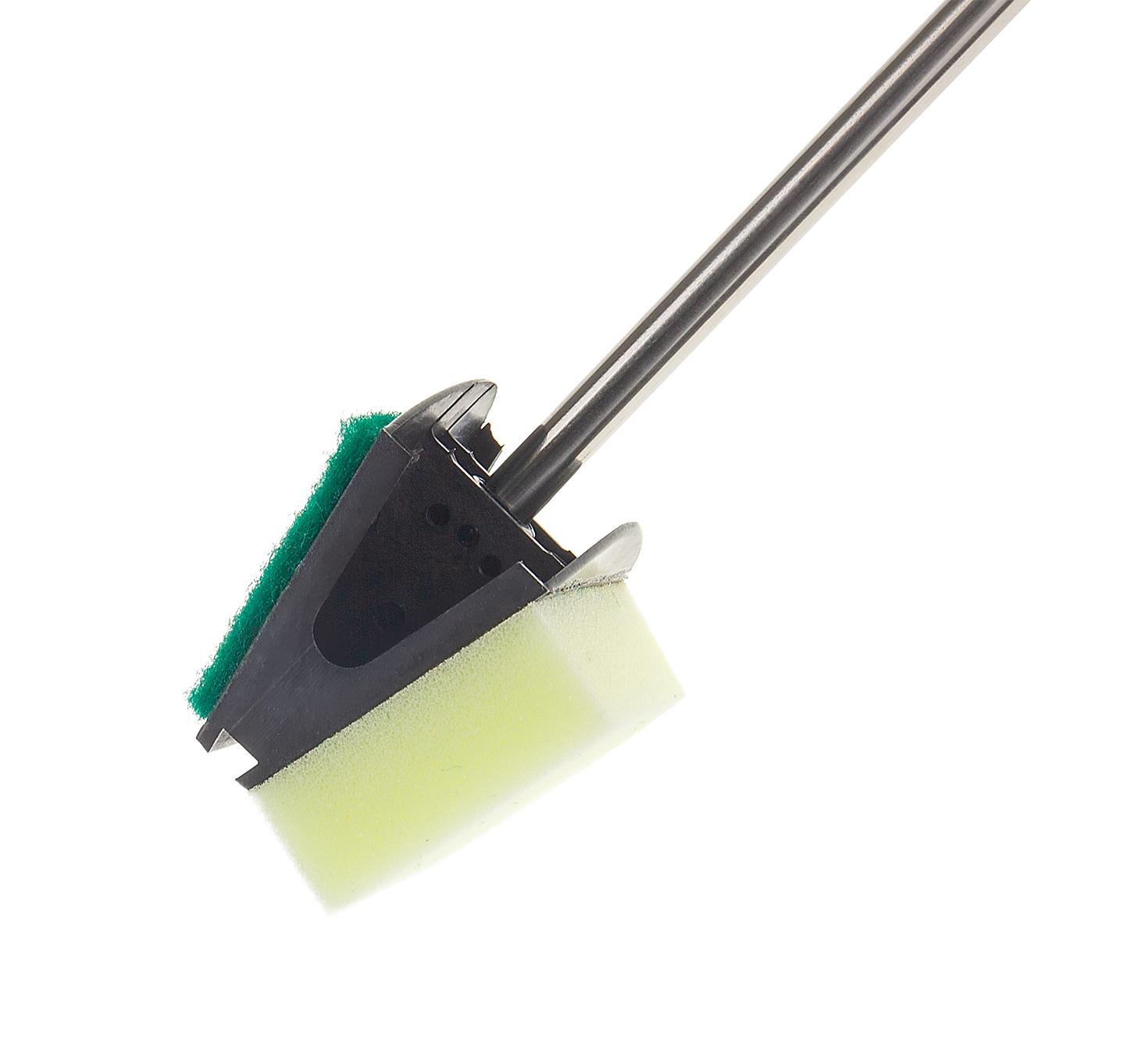 Czyścik charakteryzuje się długą rączką, co sprawia, że czyszczenie jest wygodne i łatwe. Antypoślizgowy uchwyt zapewnia komfort podczas użytkowania. Dodatkowo, czyścik posiada otwór do zawieszenia, co ułatwia przechowywanie.