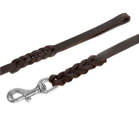 Dingo Smycz skórzana natłuszczana z zaplatanymi elementami 1,2x180cm brązowa
