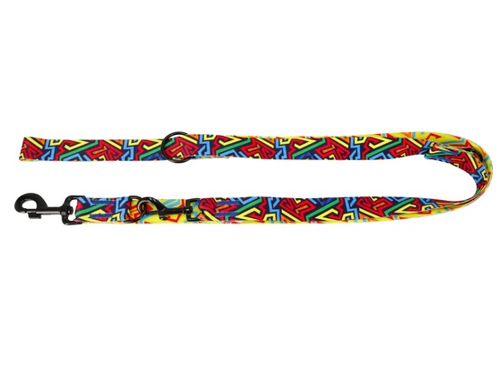 Odkryj smycz przepinaną z kolekcji City w atrakcyjnym wzorze Graffiti. To idealny wybór na letnie spacery, który doda kolorów każdej przechadzce. Wyposażona w stalowe, chromowane okucia oraz solidny karabińczyk, smycz jest odporna na zmienne warunki atmosferyczne oraz zabrudzenia.