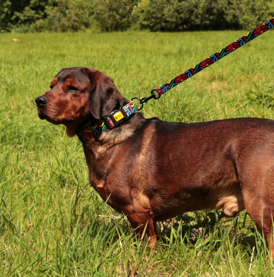 Dodatkowo, smycz można przewiesić przez ramię, co umożliwia prowadzenie psa bez użycia rąk. Jest lekka, dobrze leży w dłoni, a jej szerokość wynosi 3 cm.