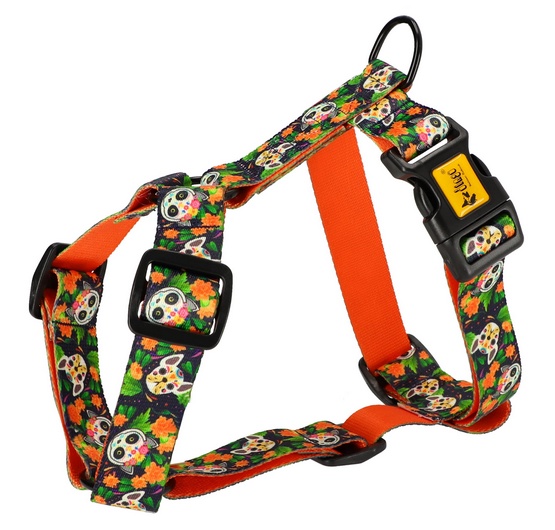 Szelki Guard City w rozmiarze M to doskonały wybór dla każdego psa. Wykonane z wysokiej jakości materiałów, łączą w sobie funkcjonalność i estetykę. Inspirowane meksykańską kulturą, ich wyjątkowy wzór z pomarańczowymi kwiatami aksamitek oraz motywami zwierzęcych calaveras nadaje im niepowtarzalny charakter.