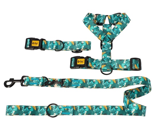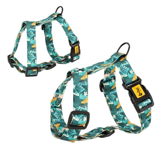 Wybierz szelki GUARD z kolekcji City, idealne na letnie spacery z psem. Wykonane w tropikalne wzory, łączą styl z komfortem. Długotrwały materiał w wzorze Monstera zapewnia trwałość na lata.