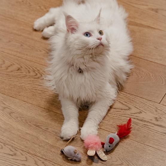 Myszki są lekkie i łatwe do noszenia, co umożliwia kotom swobodne podrzucanie i gonienie ich. Dodatkowo, dzwoneczki umieszczone przy ogonkach z piór zachęcają do zabawy i przyciągają uwagę kota.