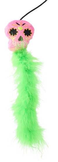 Wędka Upiorek to doskonała zabawa dla Twojego kota! Zabawka zachęca do aktywności dzięki puchatym piórom i przyjemnemu w dotyku materiałowi. Upiorek ma ok. 25 cm długości i jest wypełniony bezpiecznym wypełnieniem. Twój kot będzie mógł wbić pazury i gonić za puchatym ogonkiem, co umili wspólne chwile. Wygodny kijek o długości ok. 45 cm dobrze leży w dłoni, co zapewnia komfort podczas zabawy.
