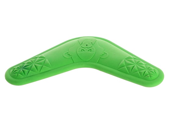 Można go używać zarówno do aportowania, jak i do zabawy w wodzie, ponieważ nie tonie. Wewnątrz znajduje się piszczałka, która dodatkowo stymuluje psa do zabawy. Bumerang jest idealny dla małych i średnich psów. Pamiętaj, aby zawsze nadzorować swojego pupila podczas zabawy z tą zabawką.