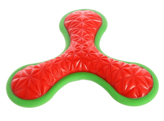 Bumerang sprawdzi się w różnych formach zabawy – zarówno do aportowania, jak i do gryzienia. Dodatkowo, można go używać w wodzie, ponieważ nie tonie. Zabawka zawiera piszczałkę, co dodatkowo stymuluje psa do zabawy.